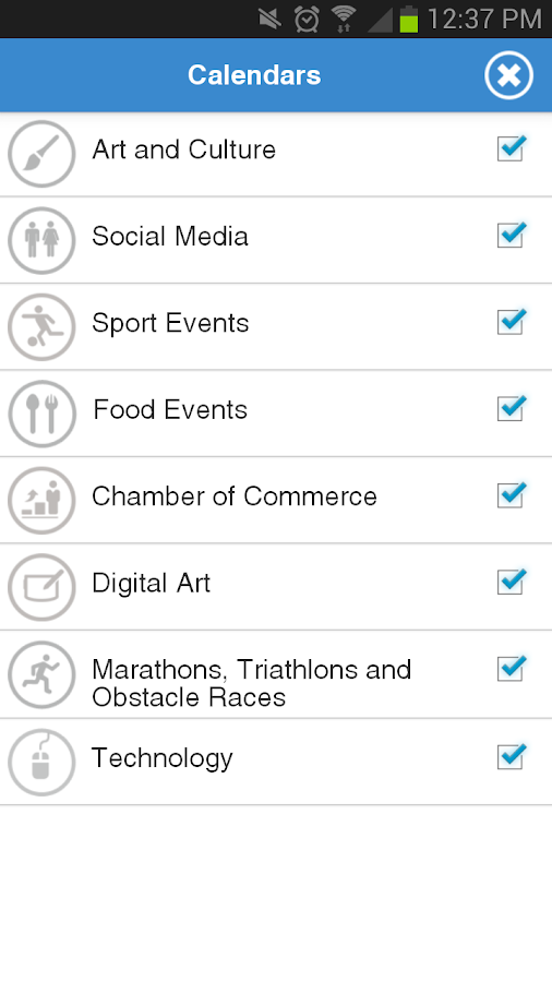 Select and follow your favorite events on Twitter with #hashtags already included, share using Facebook, Google+ Email, SMS so your friends get on the action, too.